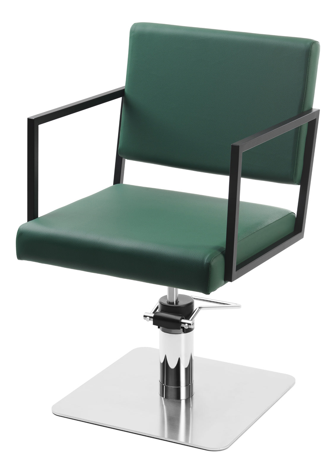 Kadeřnická židle má černé, robustní sedák a opěradlo. Oba jsou vyrobeny z vysoce kvalitní umělé kůže. Kadeřnická židle tak předčí očekávání i těch nejnáročnějších zákazníků.