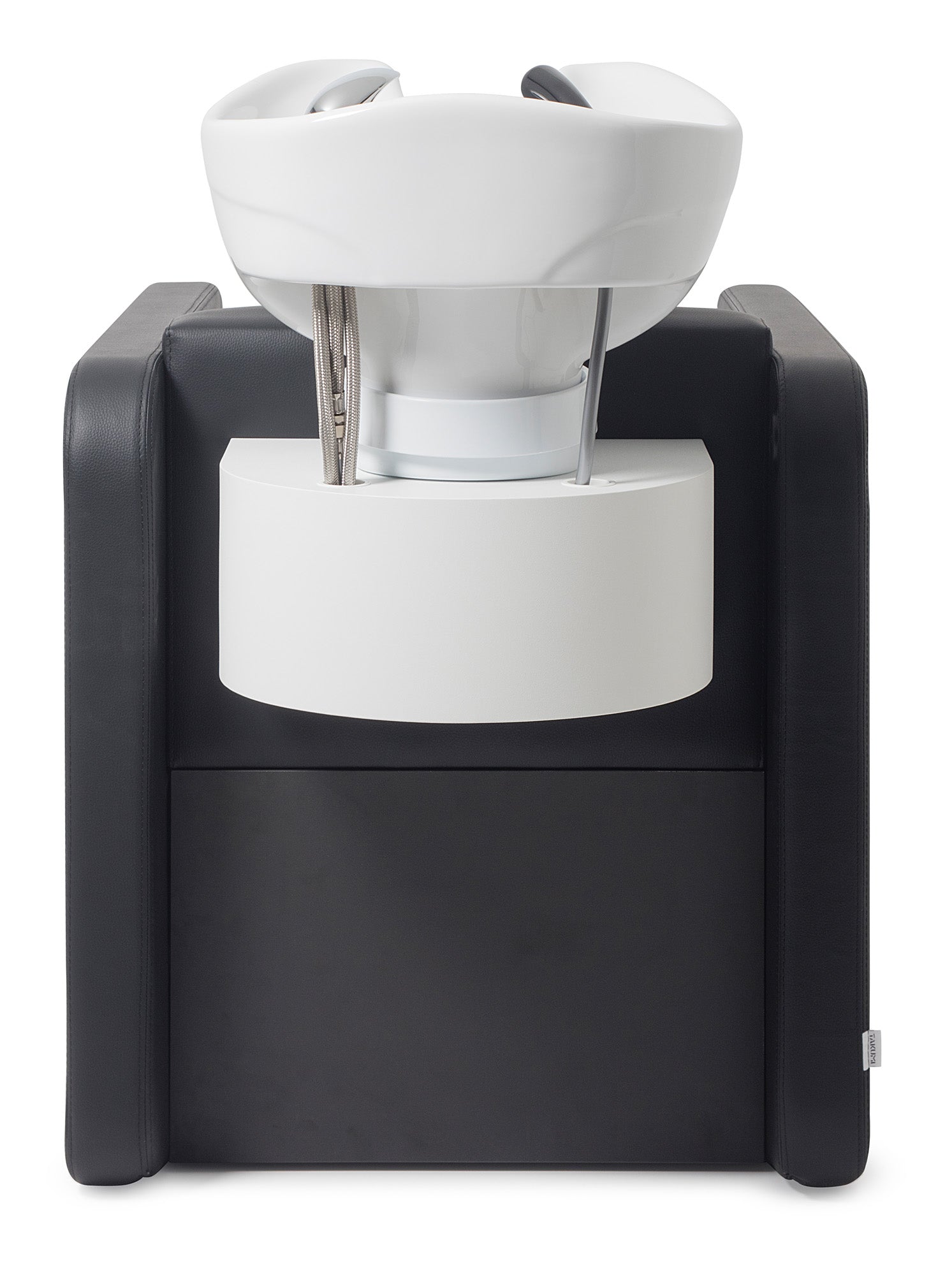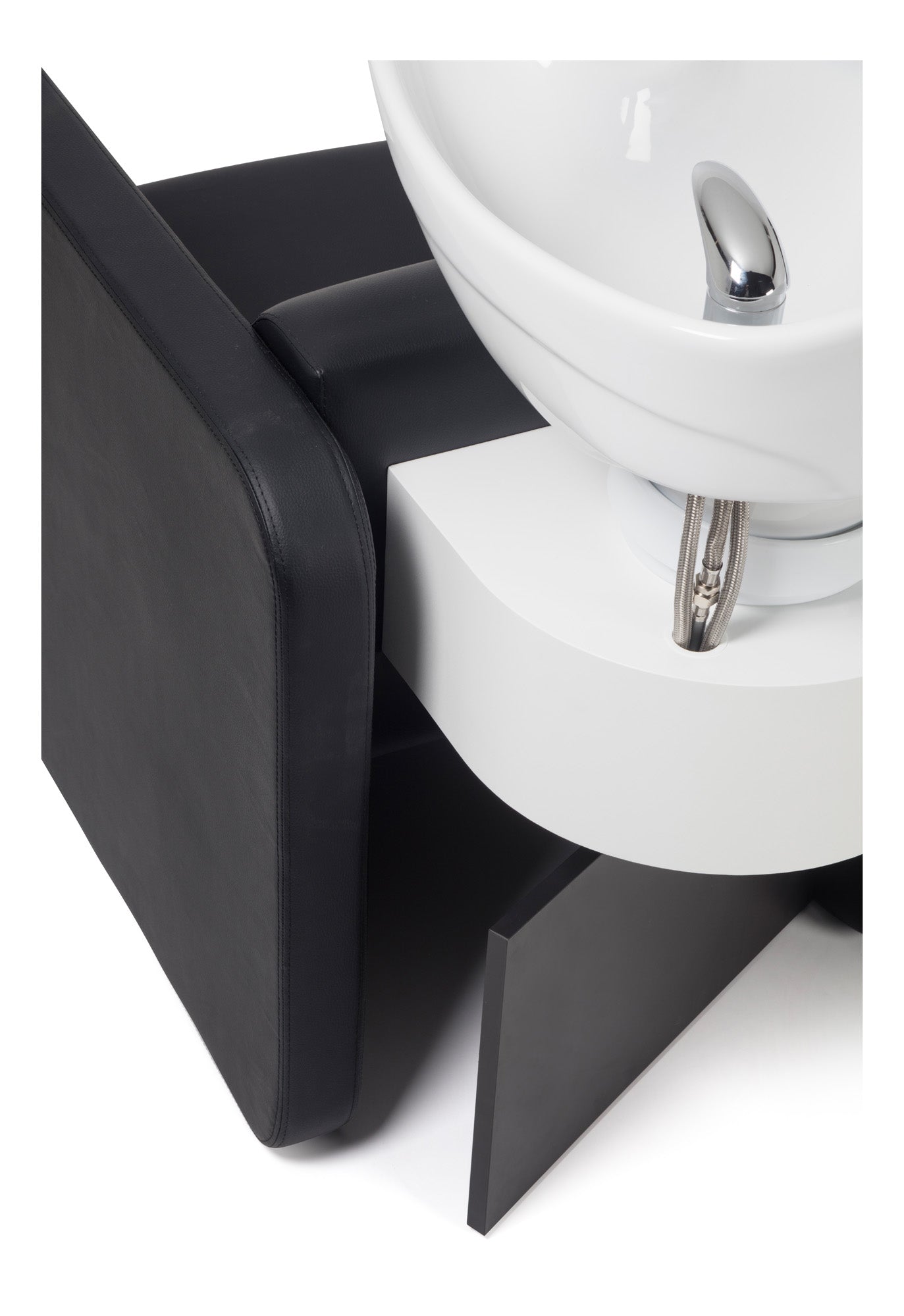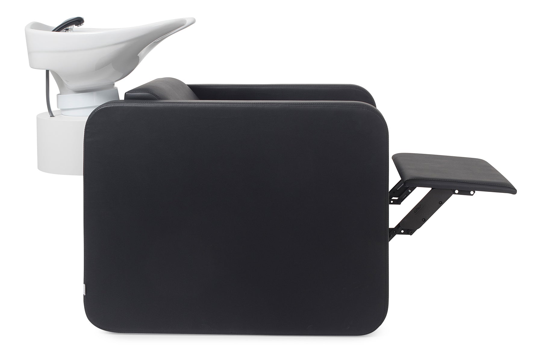 Umyvadlová židle pro mytí vlasů. Jedná se o reverzní podložku, což znamená, že je vyrobena speciálně pro kadeřníky. Zákazníci se tak mohou opřít, aby si nechali umýt vlasy. Barva krytu myčky může být libovolně zvolena a k dispozici je 17 barev. Ty lze vyčíst z barevného grafu výrobce. Odpovídající dřez je bílý. Mycí křeslo však dokáže ještě více: obsahuje elektrickou opěrku nohou (volitelně), takže ji můžete občas řídit nahoru a dolů, v závislosti na tom, zda ji potřebujete nebo ne. Kromě toho je do opěradla integrována masážní funkce (volitelně), takže si můžete odpočinout při mytí vlasů na reverzním mycím systému. Takže myčka aut je multifunkční a ideální pro kadeřnický salon.